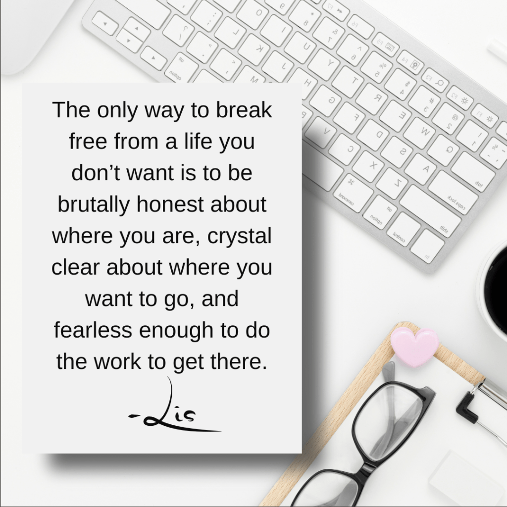 “The only way to break free from a life you don’t want is to be brutally honest about where you are, crystal clear about where you want to go, and fearless enough to do the work to get there.”